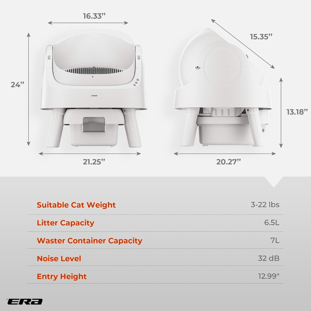 Perfect for multi-cat households, the ERA CleanSpace™ provides reliable cleaning and odor control. Whether for busy pet parents or those who value convenience, it ensures a consistently clean environment for both you and your cats.