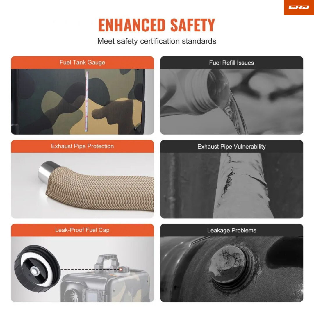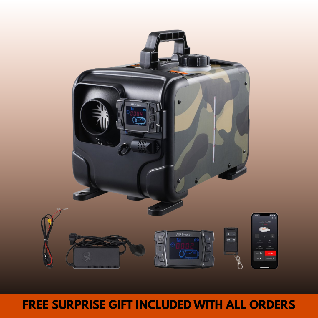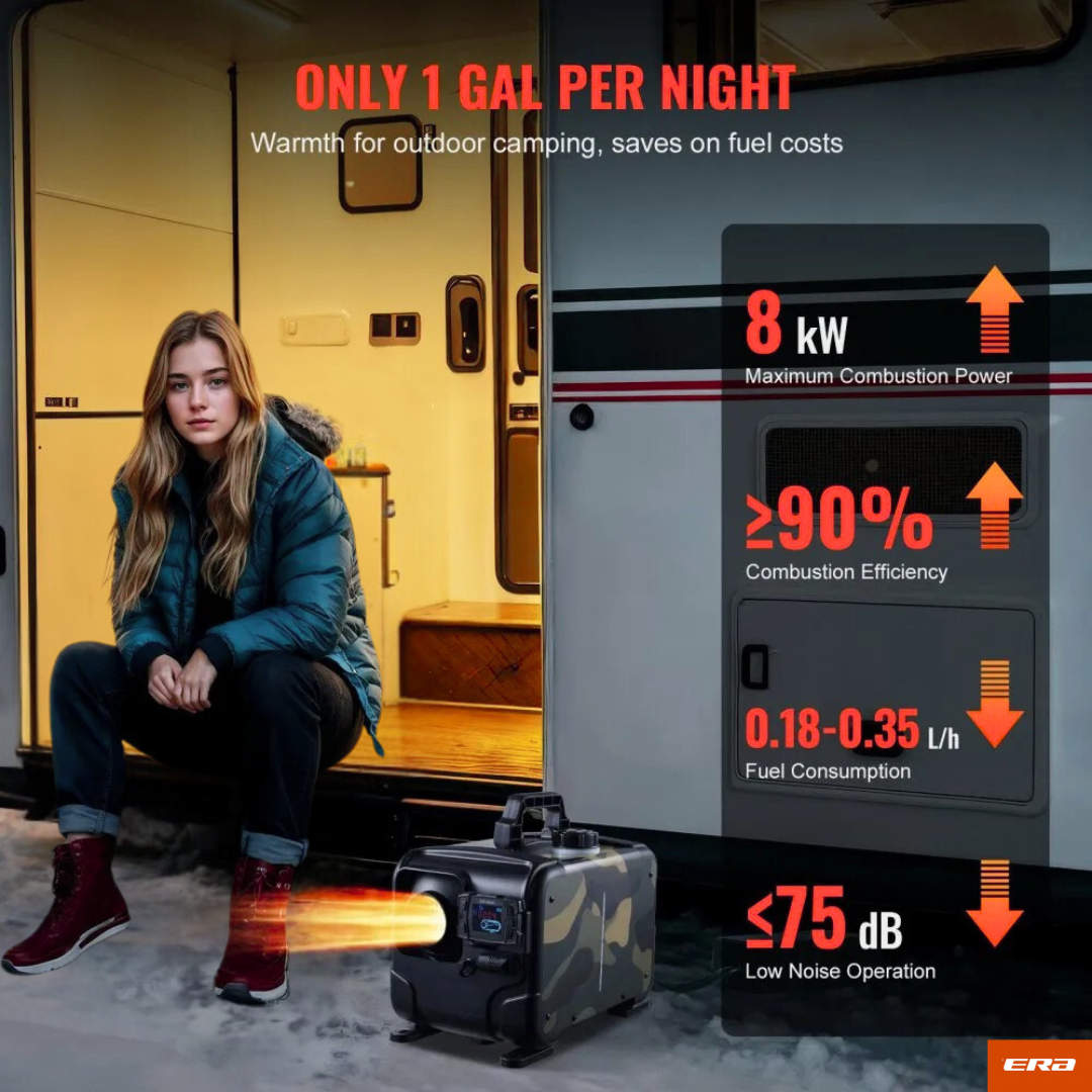 Yes — the ERA HeatCore 8K™ is engineered for versatility and performance. With powerful 8 kW output, adjustable settings, LCD screen, remote control, and Bluetooth app compatibility, it adapts easily to your needs — ensuring fast, quiet, and fuel-efficient heating anywhere.