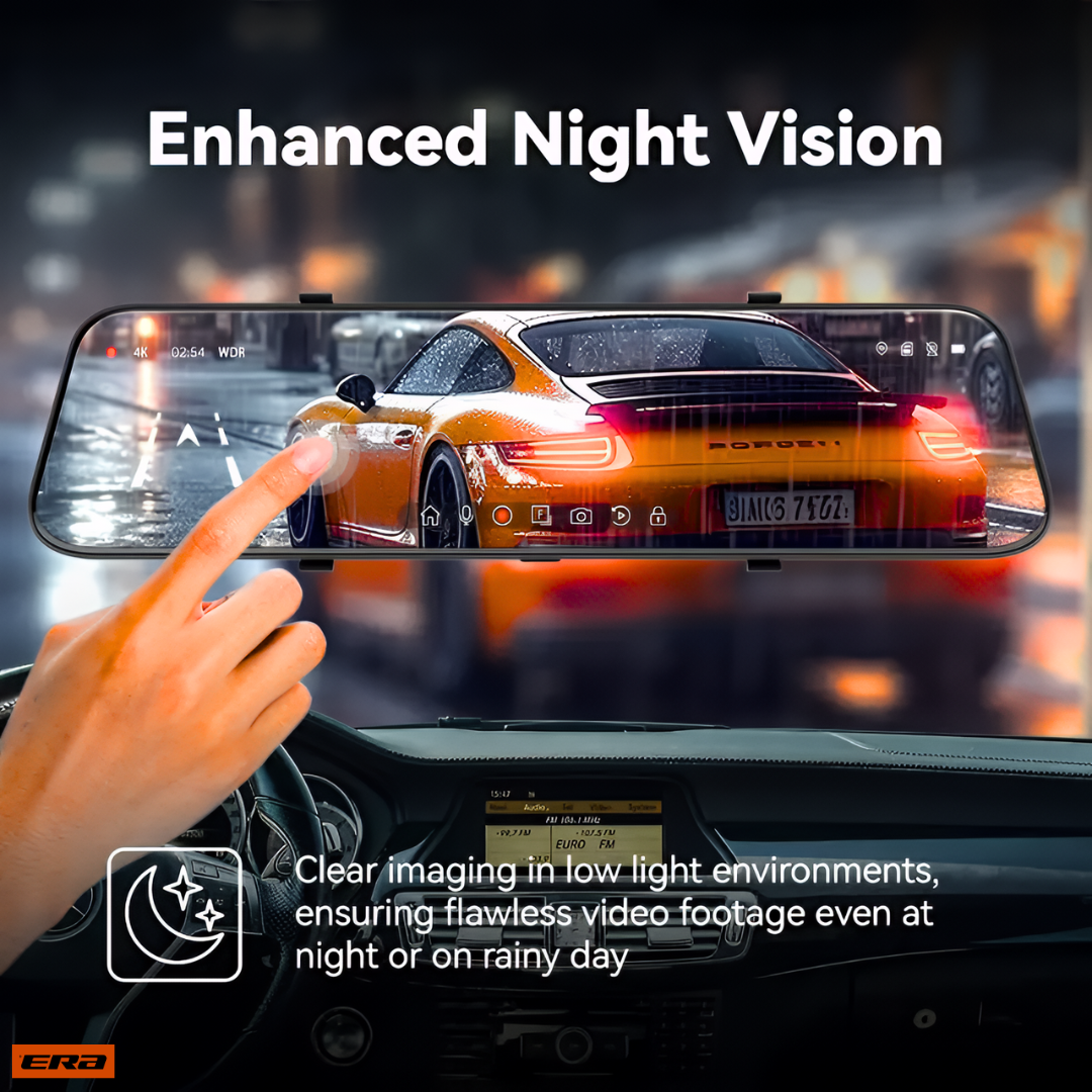 The ERA RoadSense™ features a slim, space-saving design optimized for modern vehicles. Its streamlined form delivers powerful performance without blocking visibility, blending seamlessly into your rearview mirror.