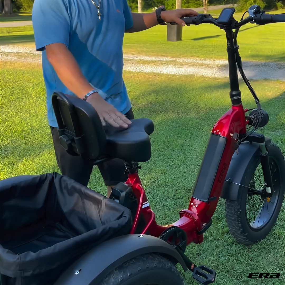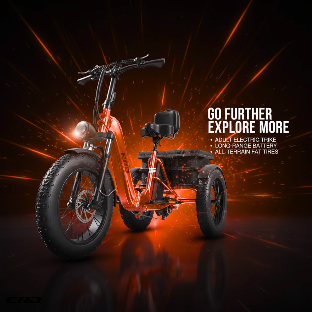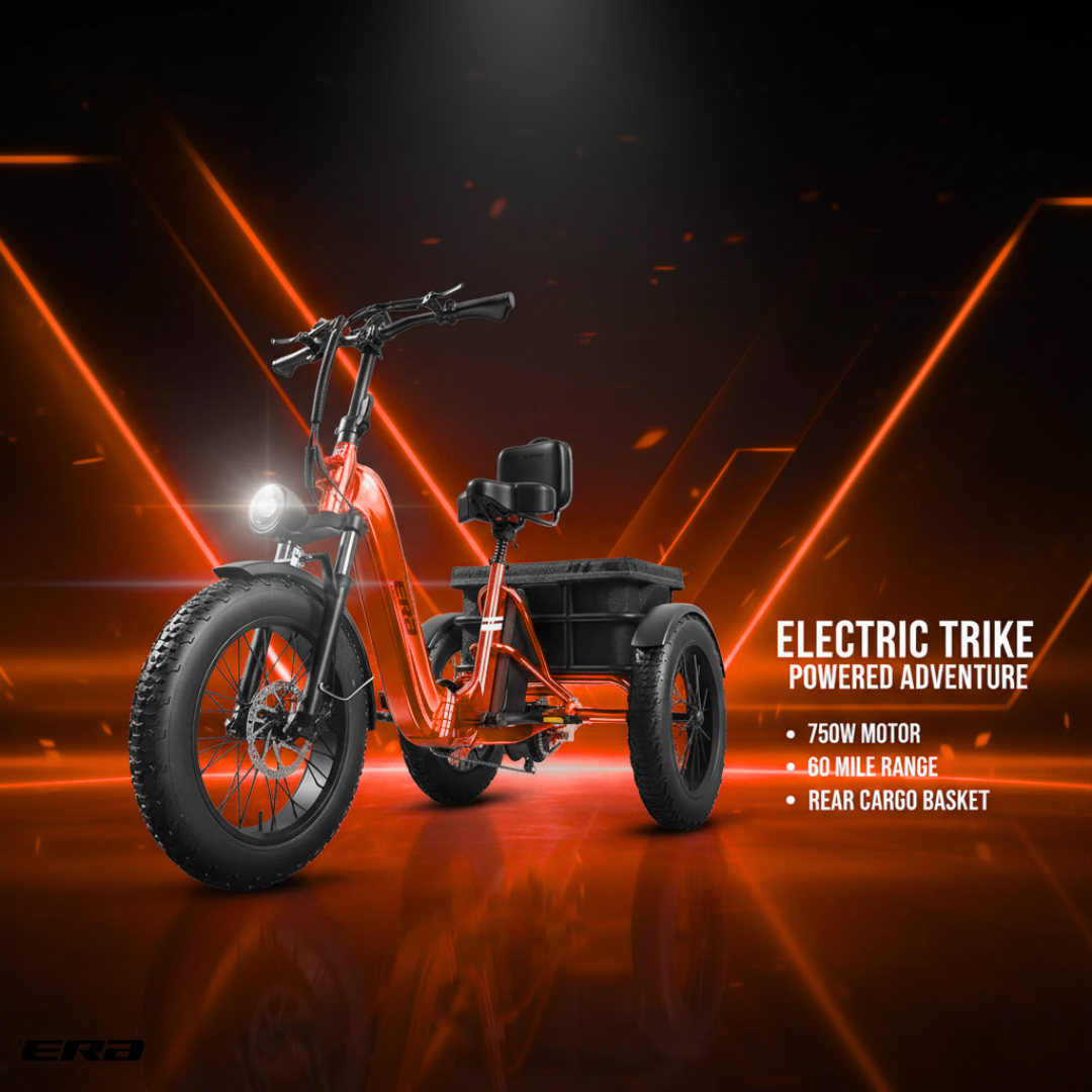 The ERA TriVolt™ is a heavy-duty electric trike with a 750W motor, 60-mile range, and 500 lbs load capacity — built for stability, power, and all-day performance.